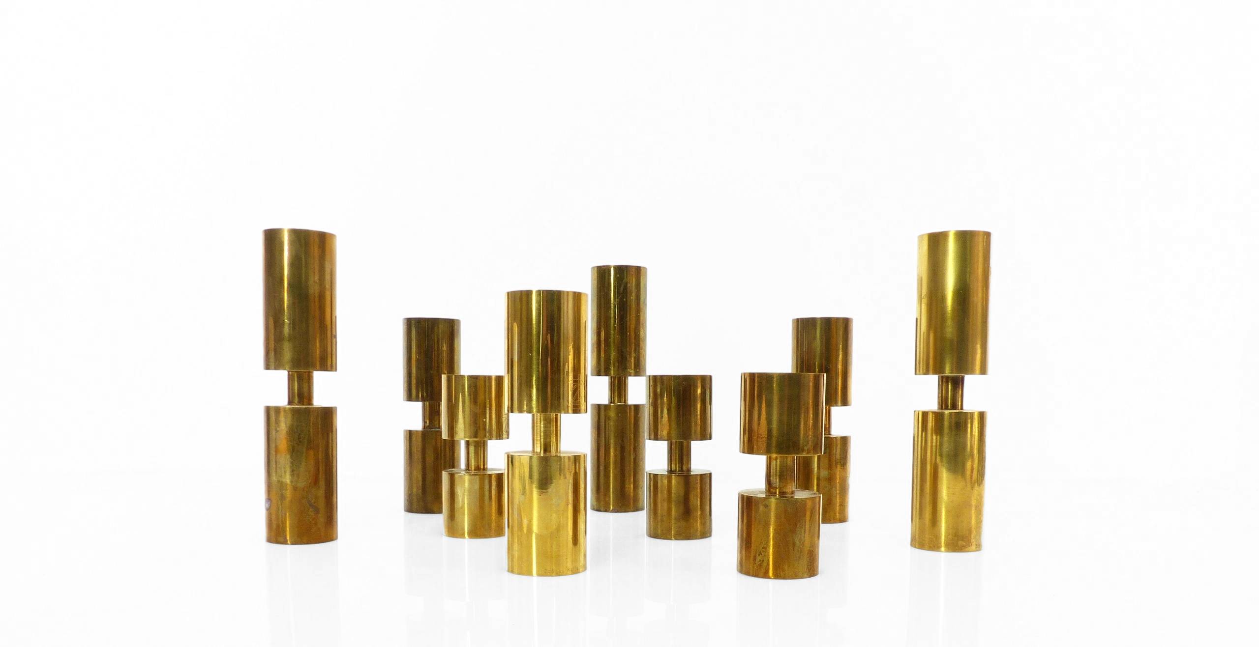 6 bougeoirs en laiton massif Ytterberg pour BCA Eskilstuna, Suède, circa 1960