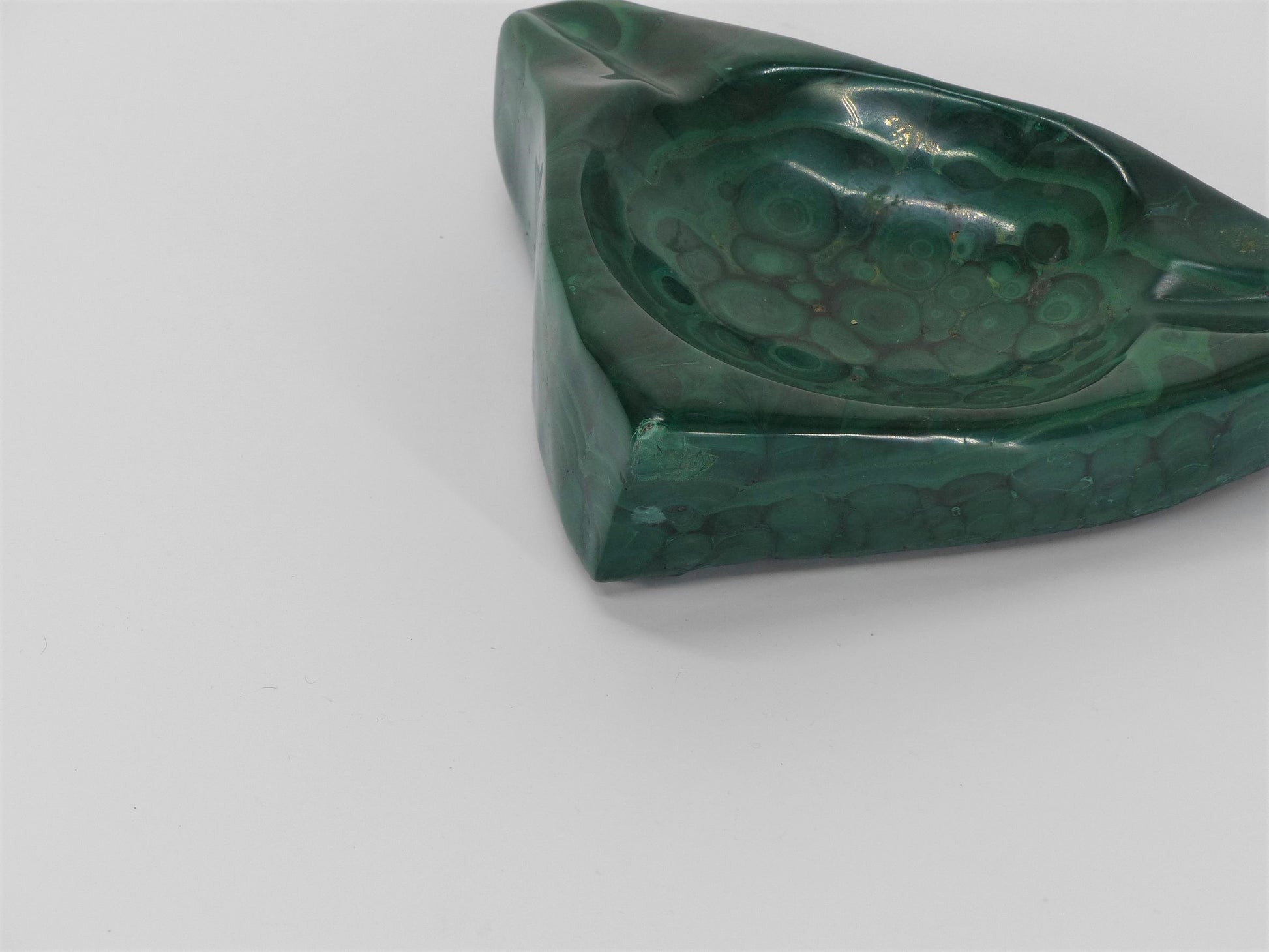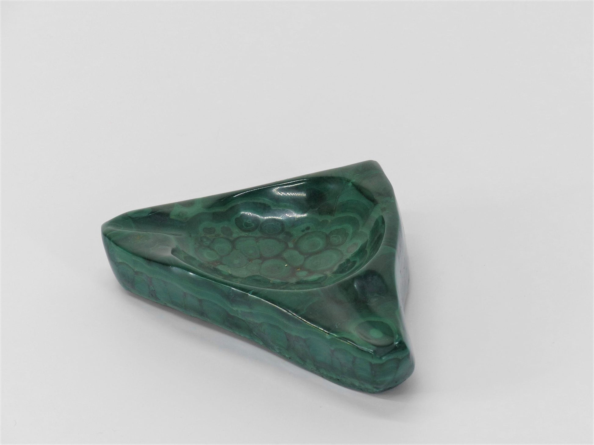 VINTAGE TRIANGLE MALACHITE EMPTY POCKET ASHTRAY