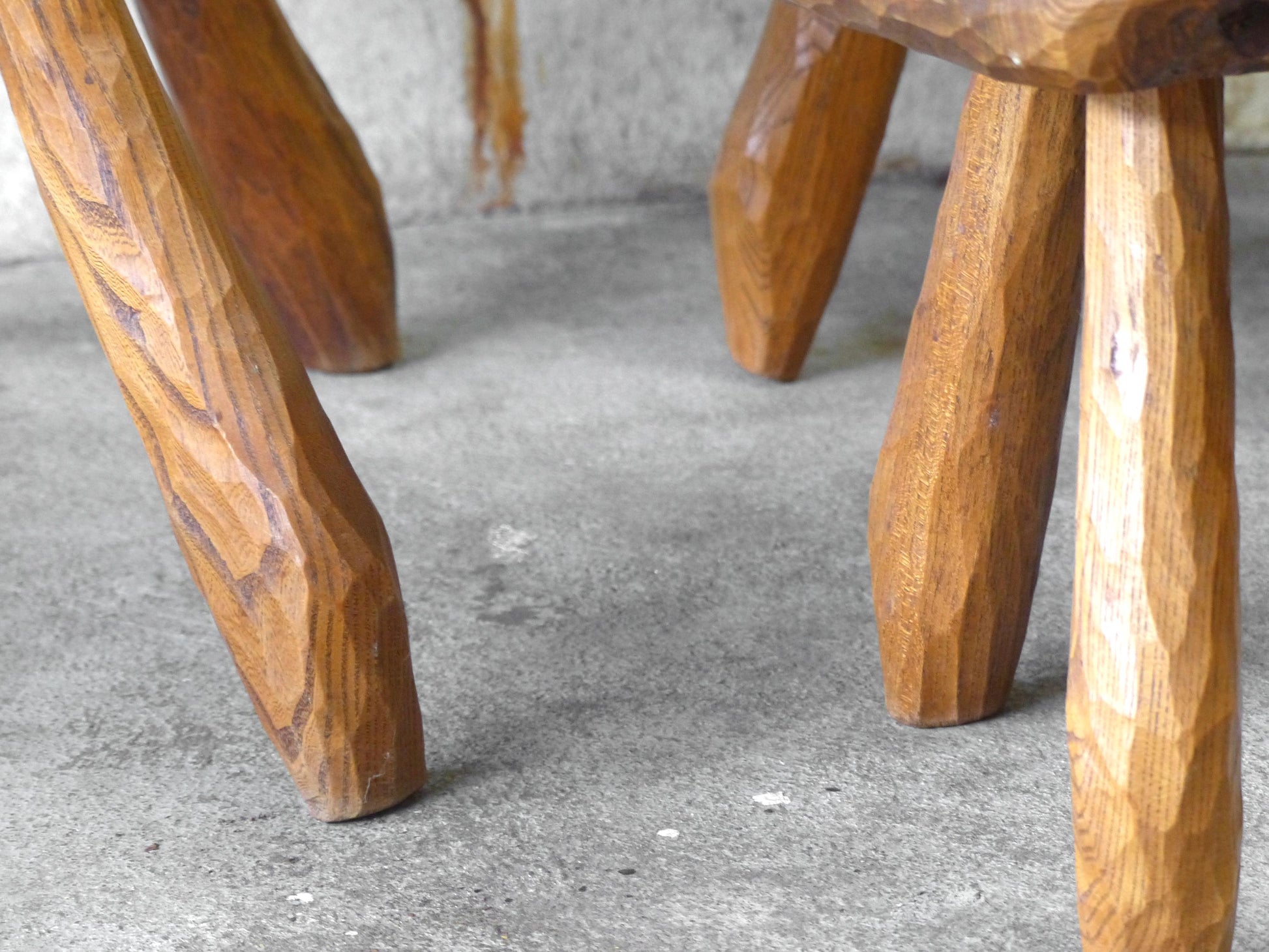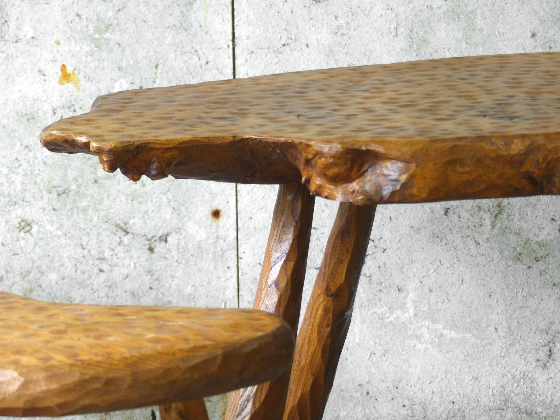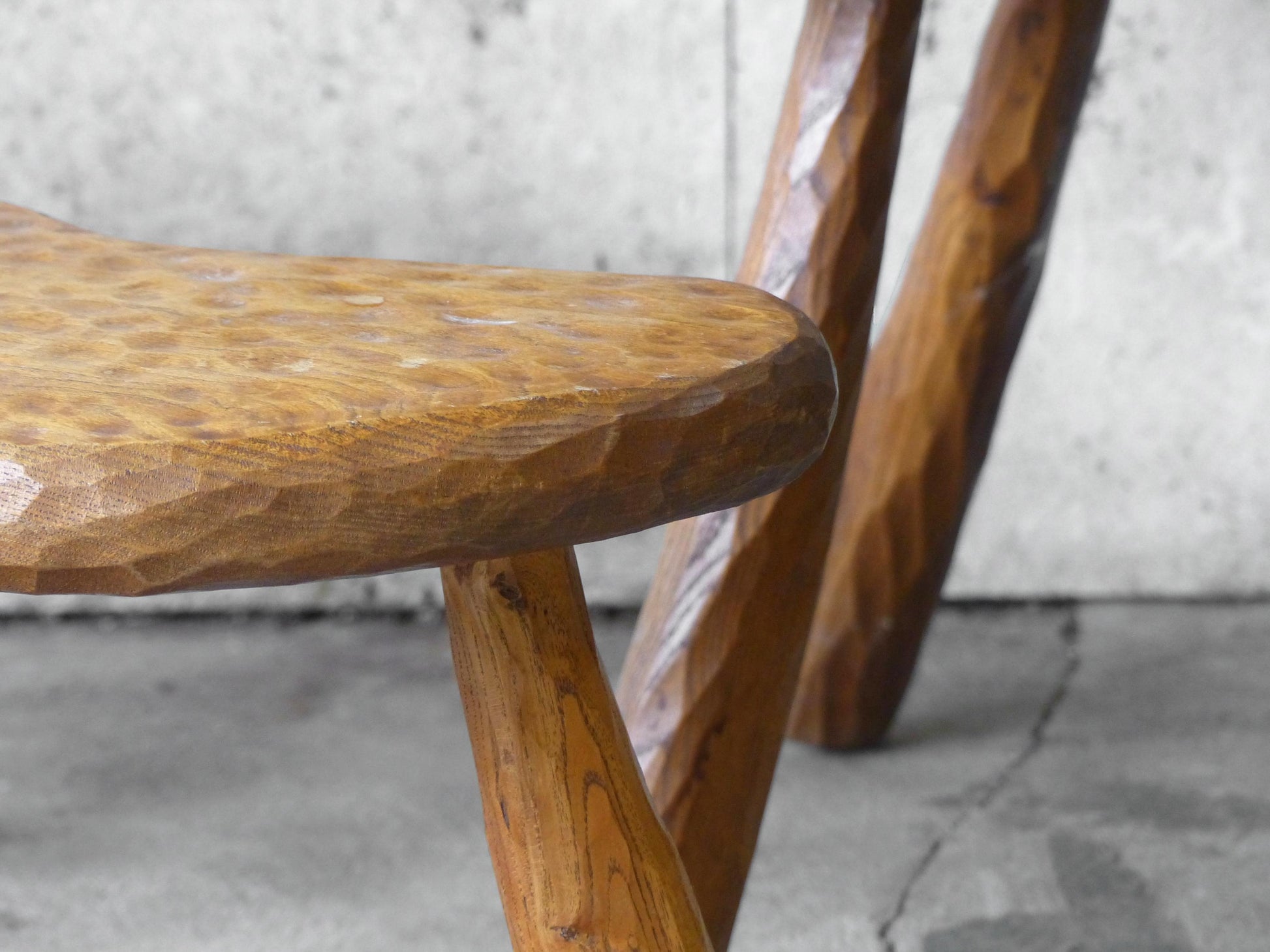 Solid elm wood carved with a gouge.