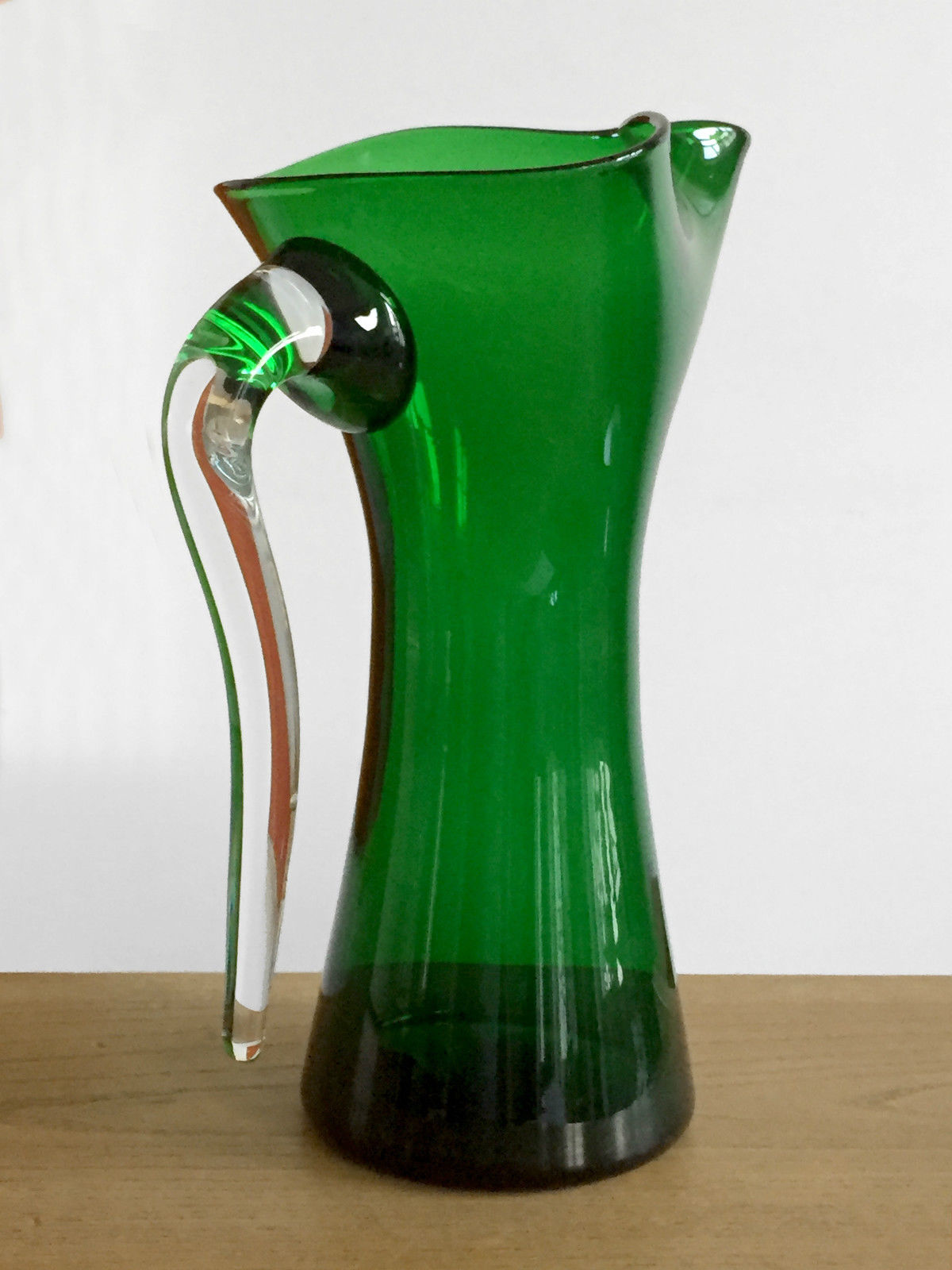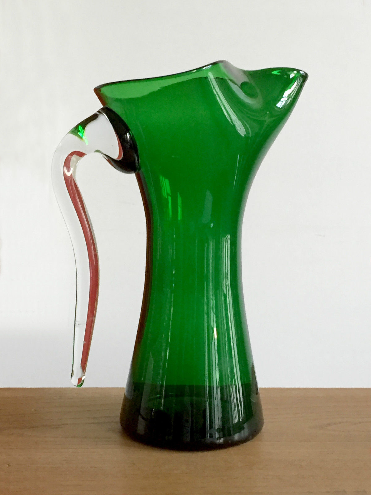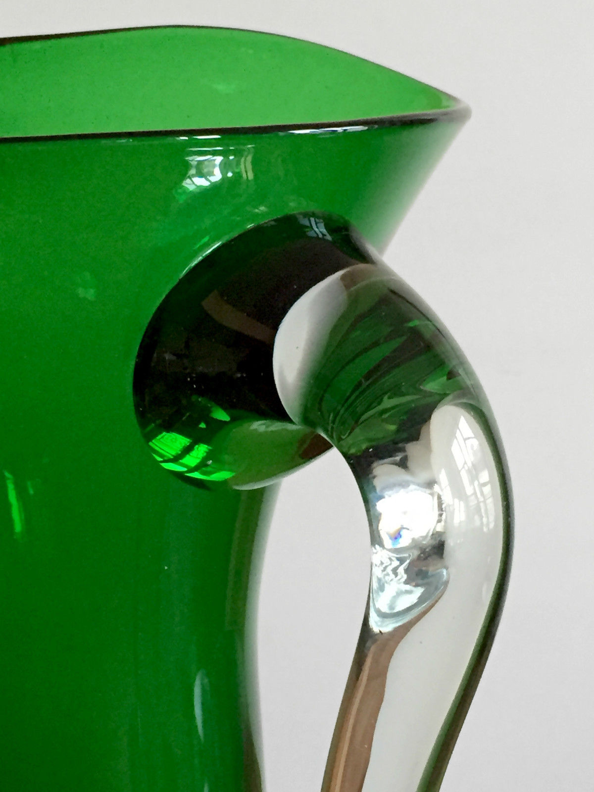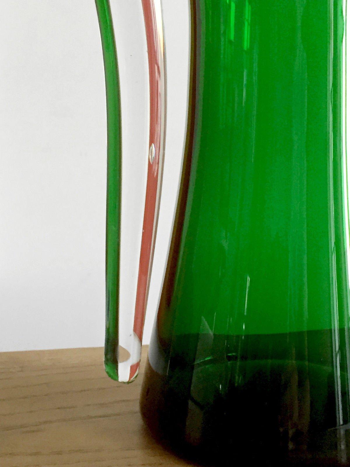 Spectacular Vintage vase, jug, in blown Murano glass, mass-dyed, green.