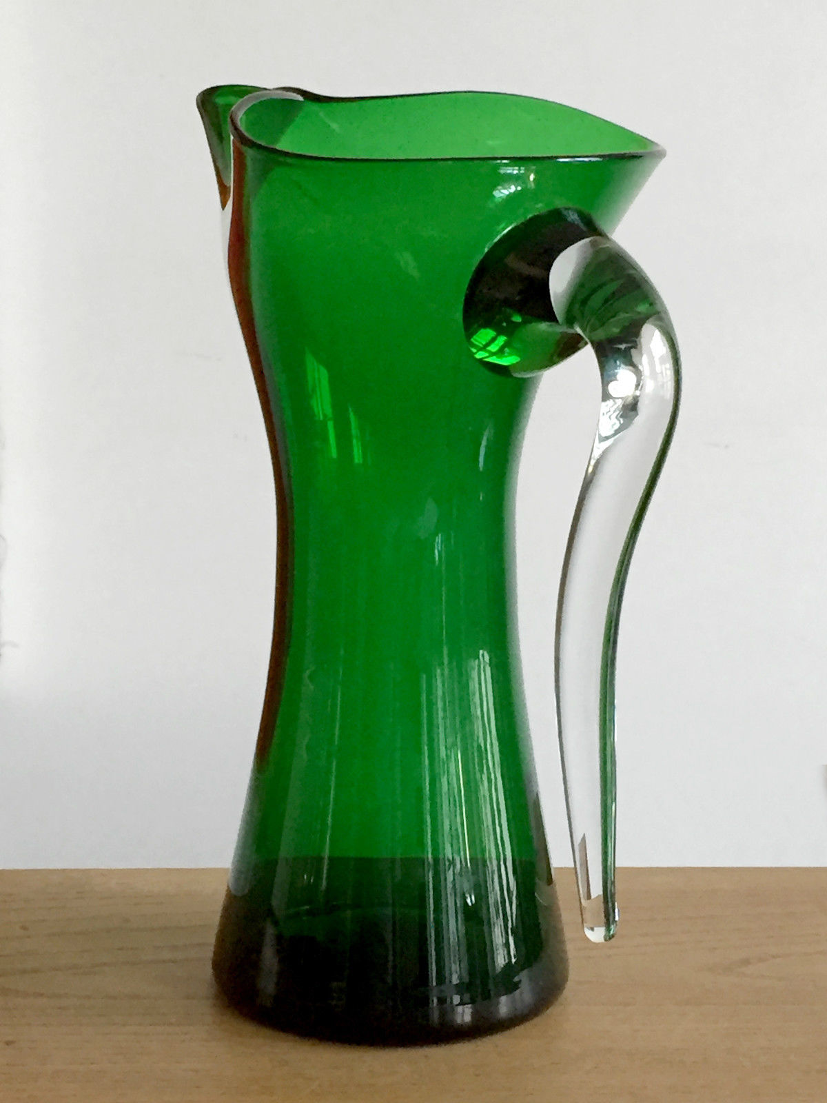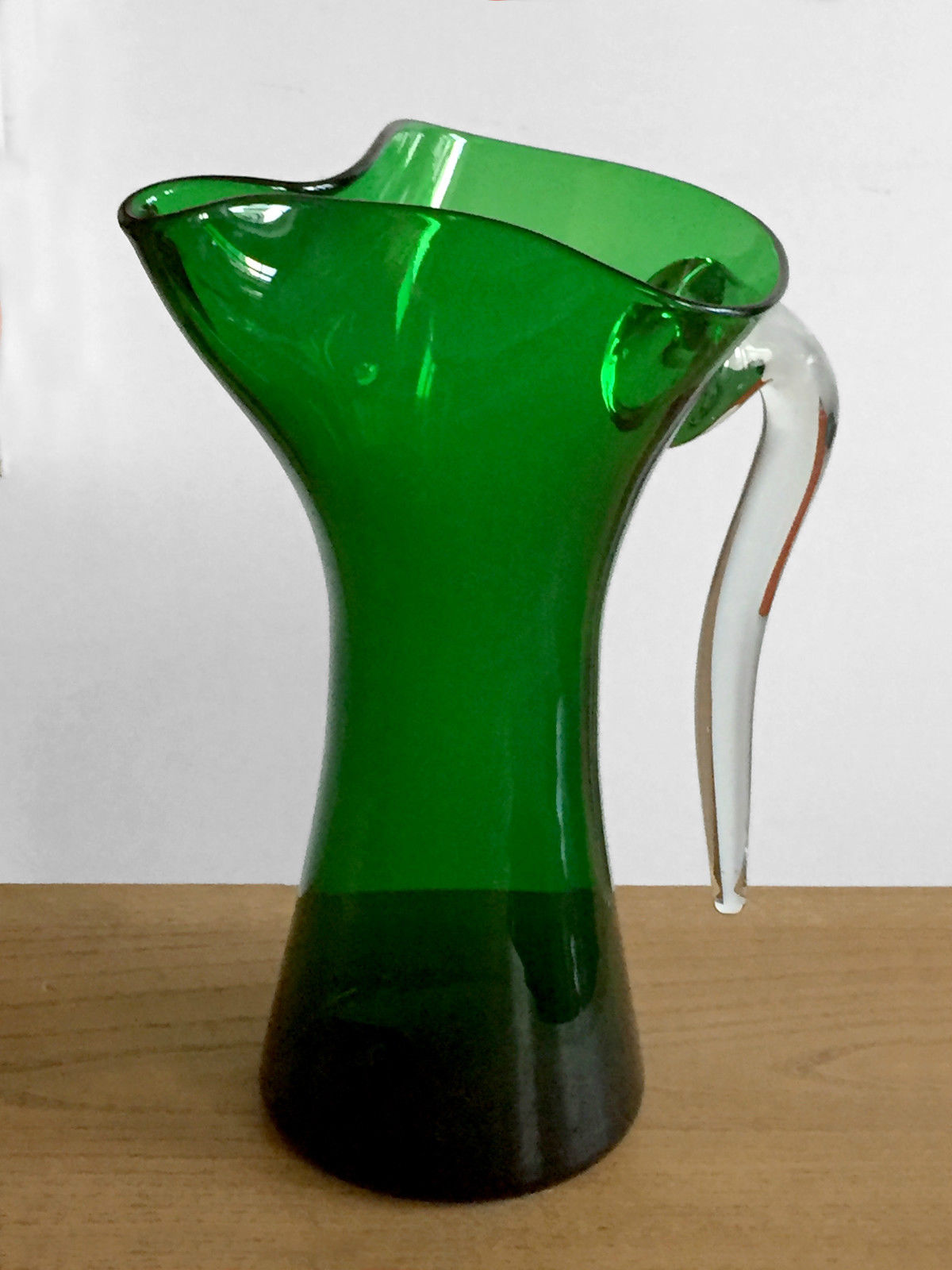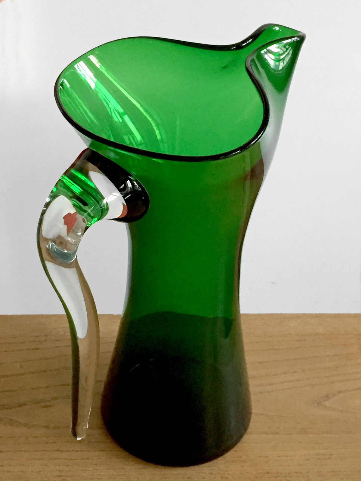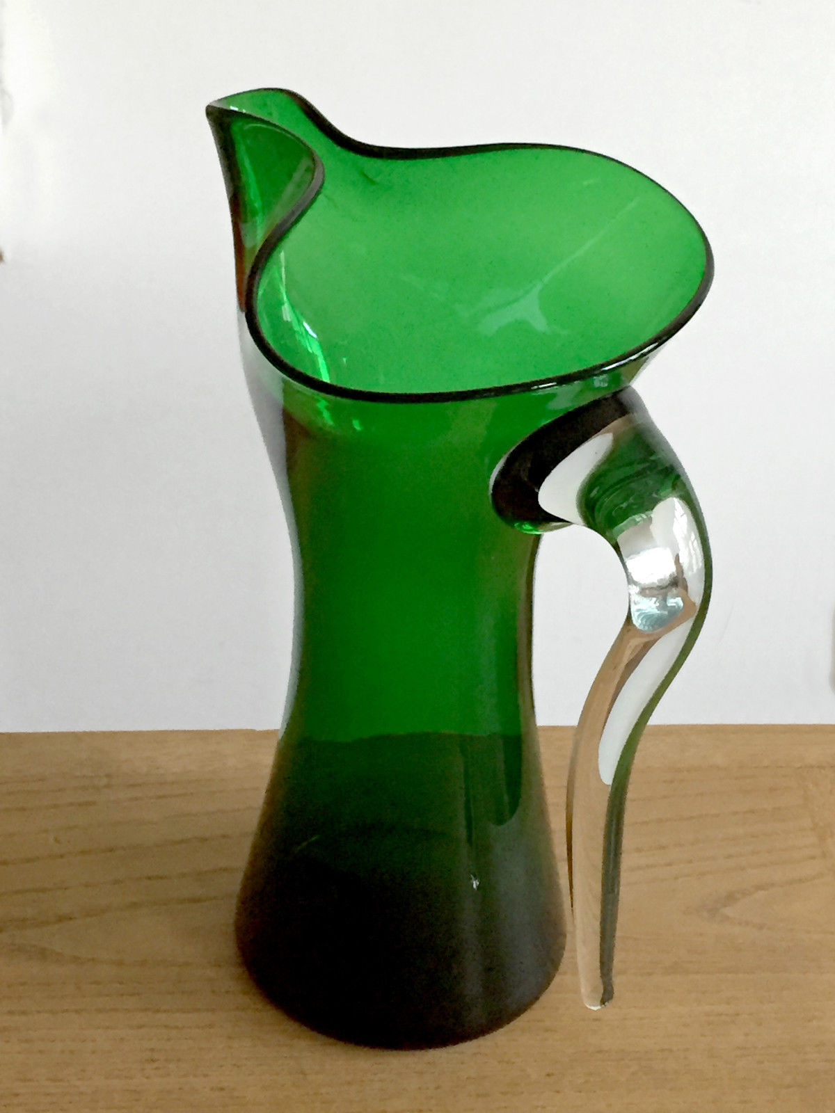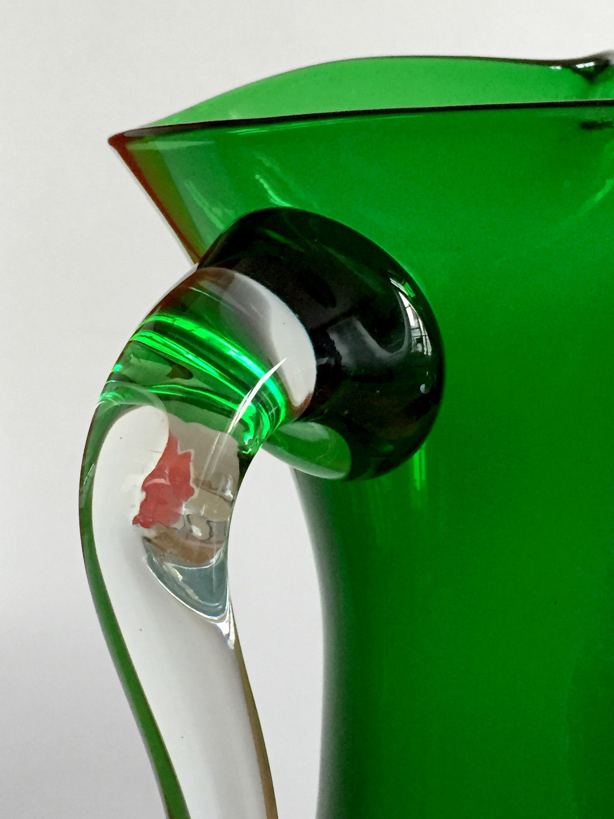 Spectacular Vintage vase, jug, in blown Murano glass, mass-dyed, green.