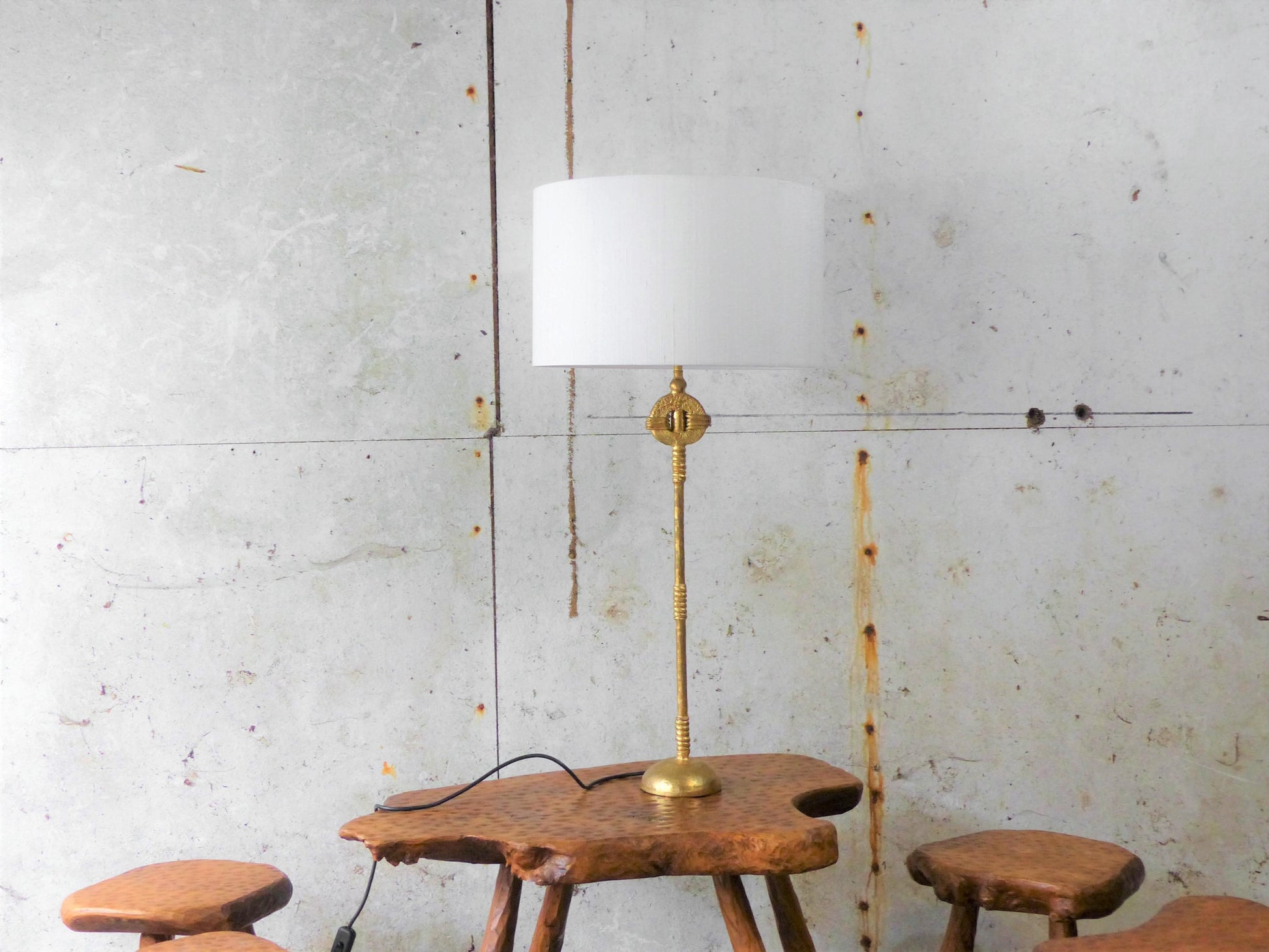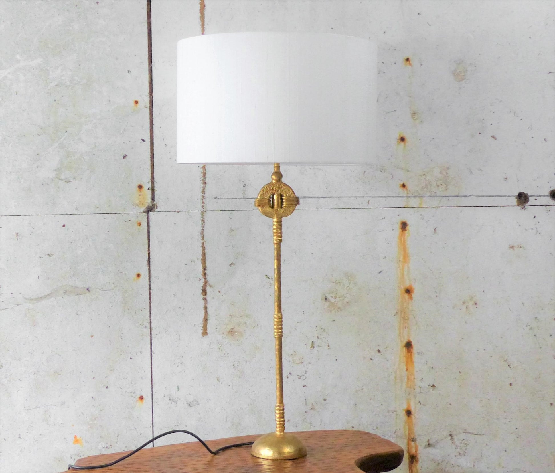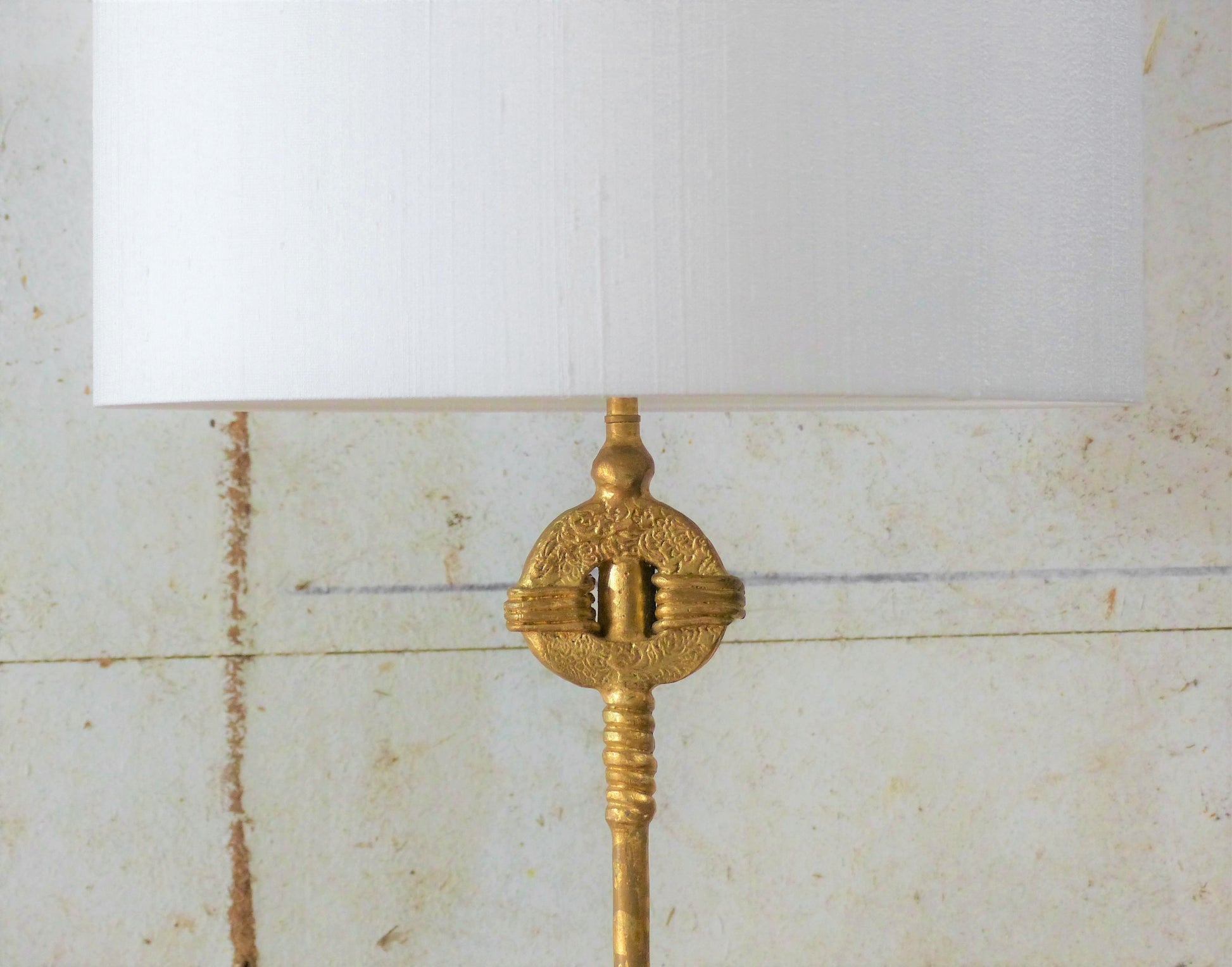 Large and elegant sculpture lamp, in gilded bronze (65 cm excluding lampshade), signed Fondica edition, circa 1990.