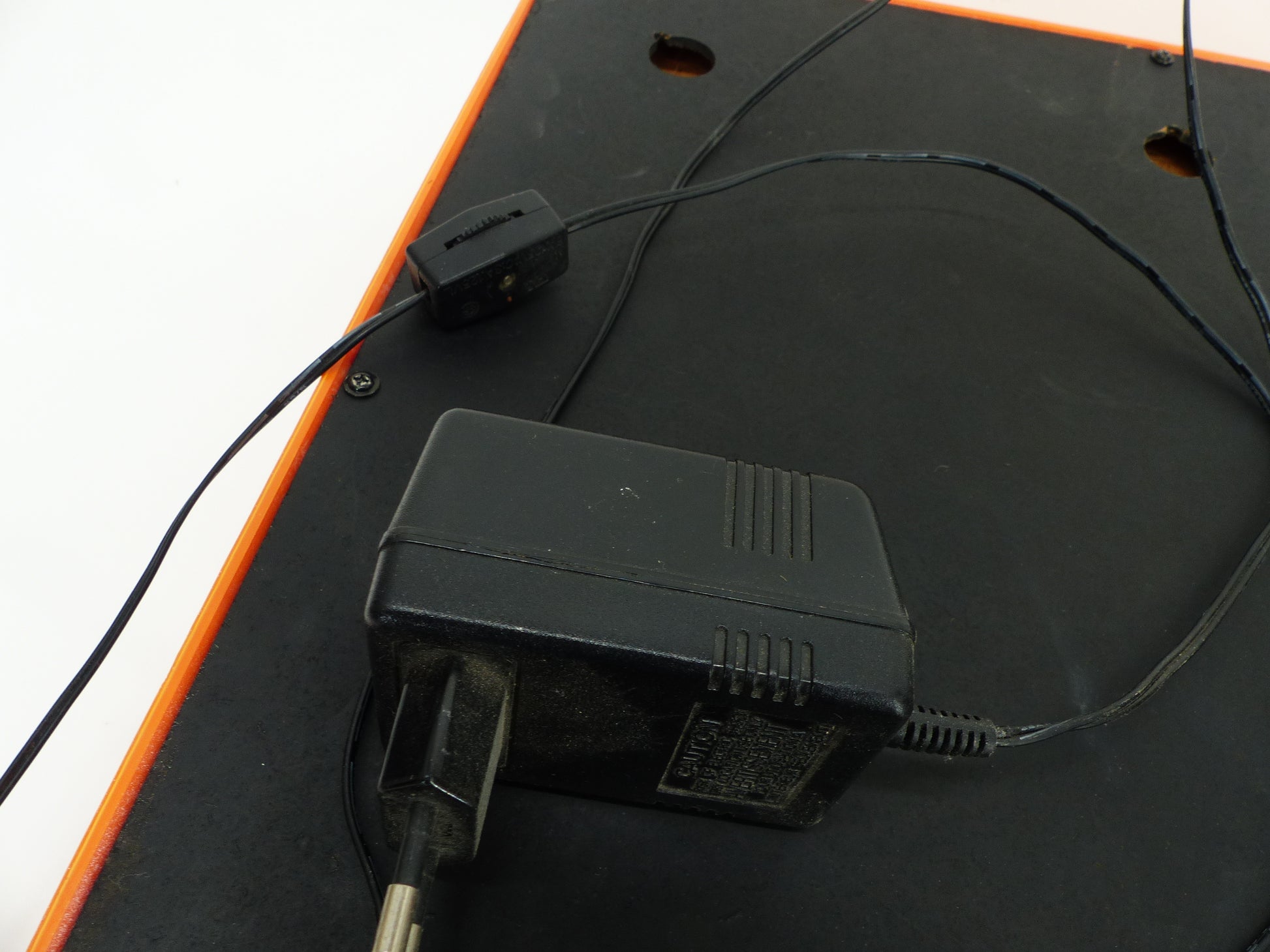 Good overall condition. Minor chip visible on one lower corner of the frame. Light functions perfectly. Original cable and transformer included.