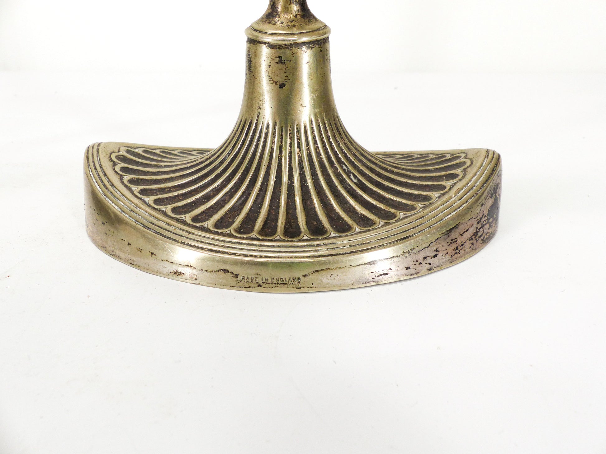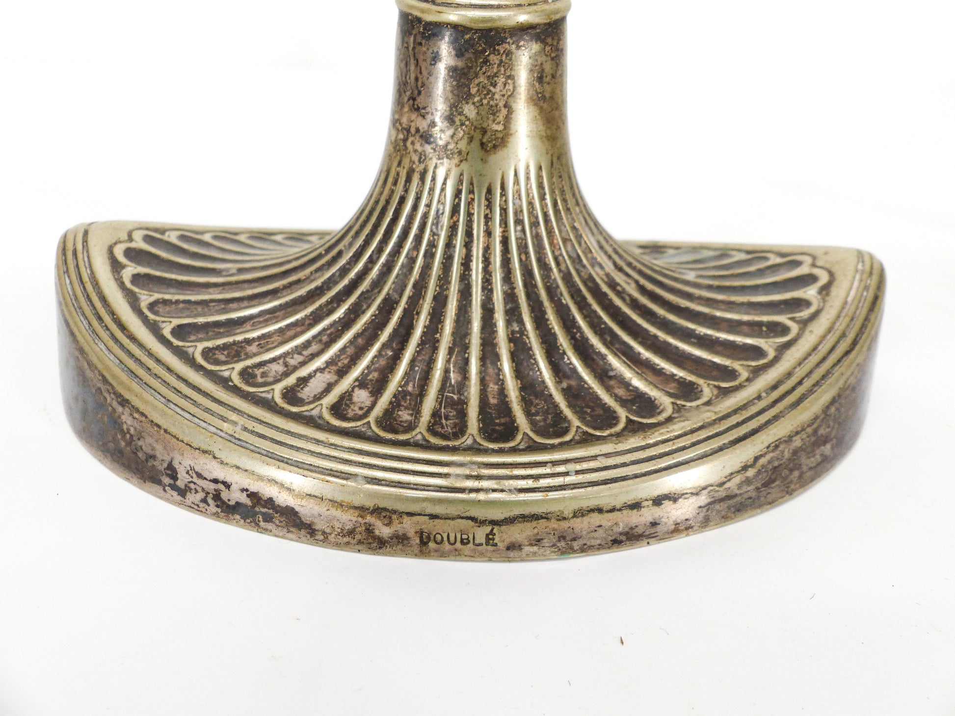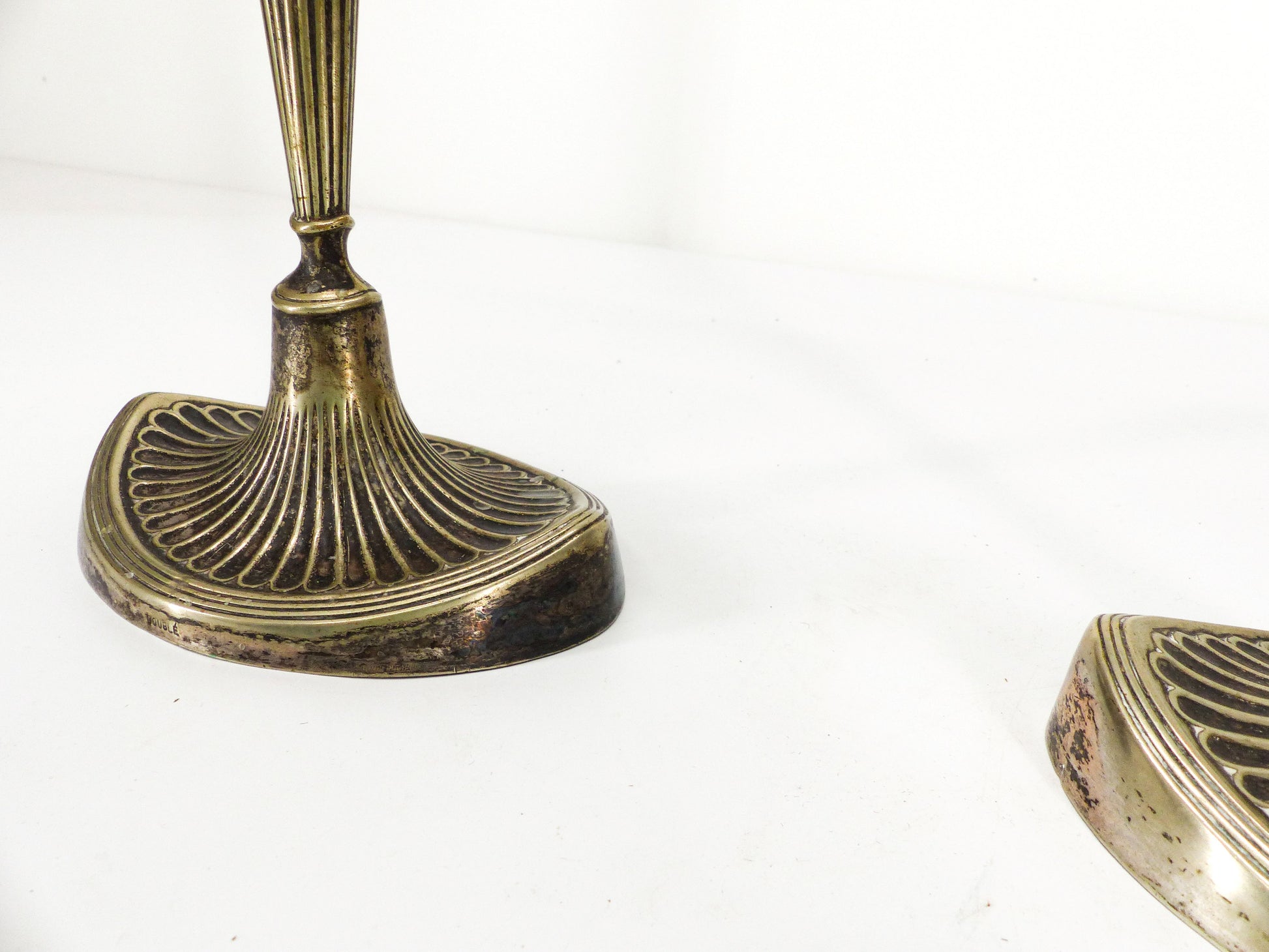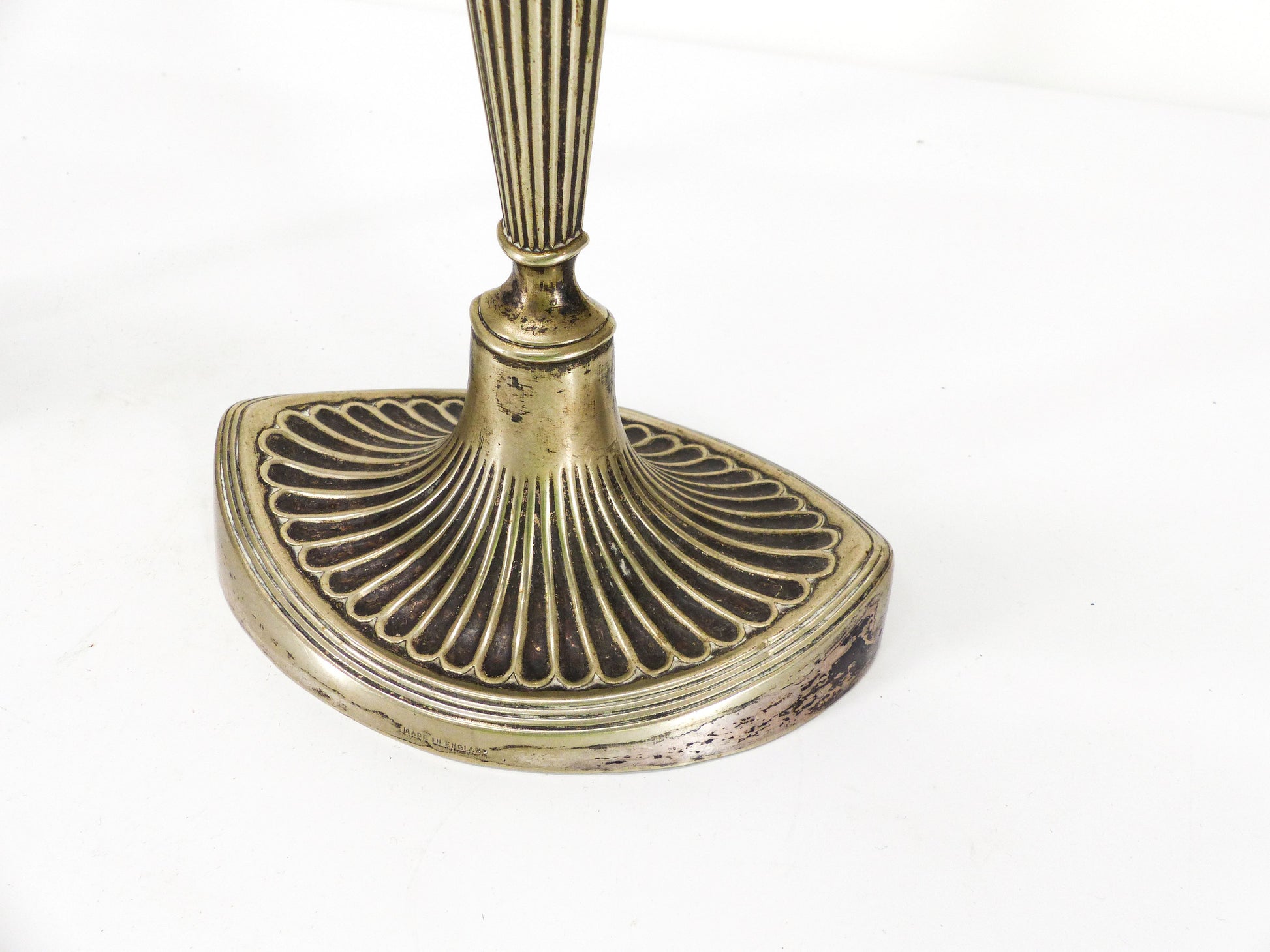 Paire d’élégants bougeoirs anglais Édouardiens en métal argenté, patine d’usage, peut nécessiter un nettoyage.