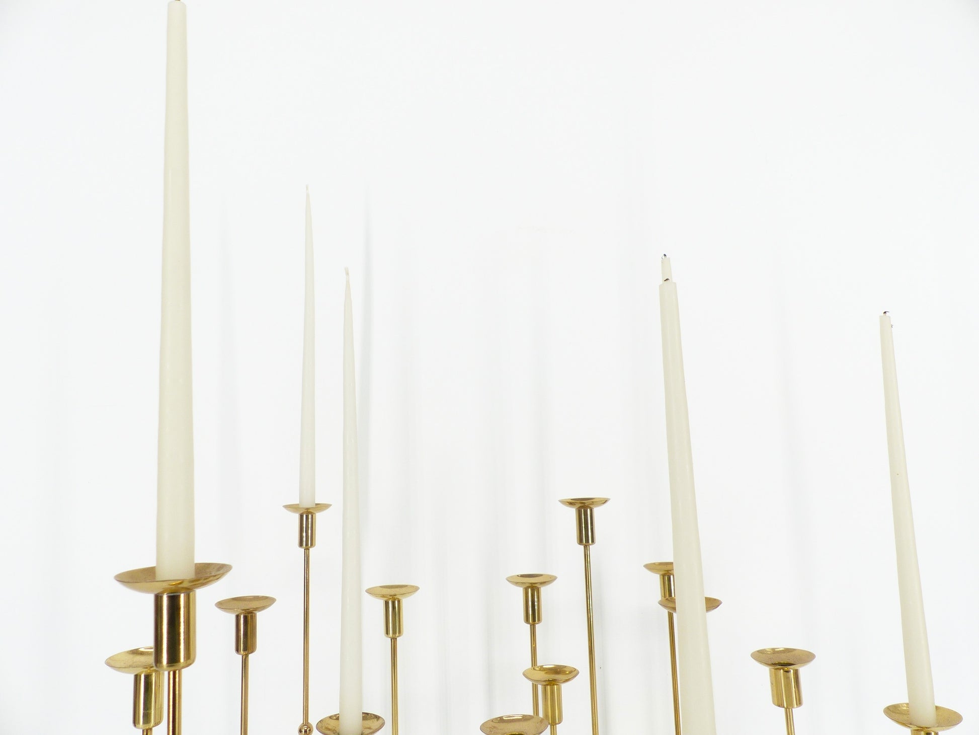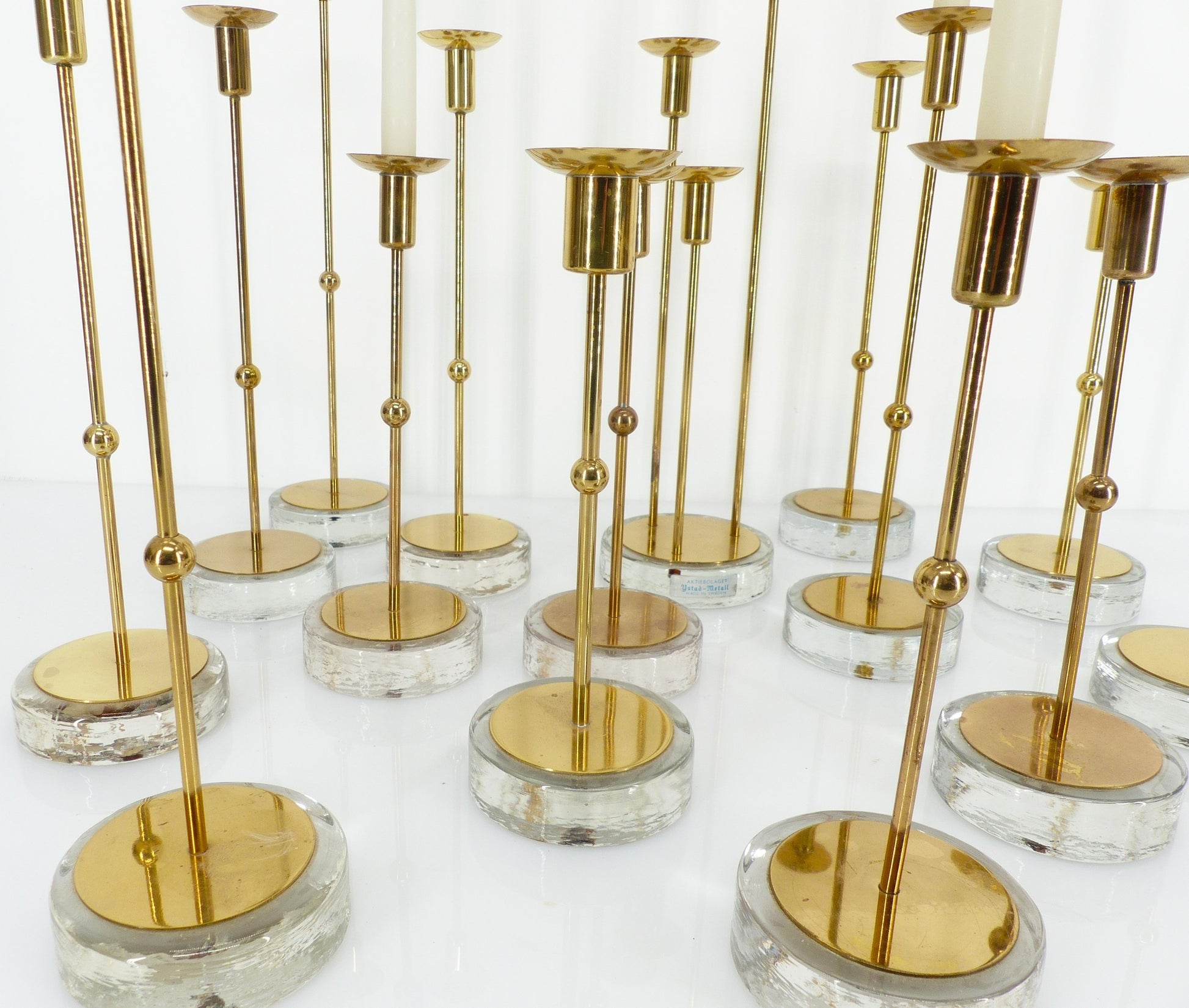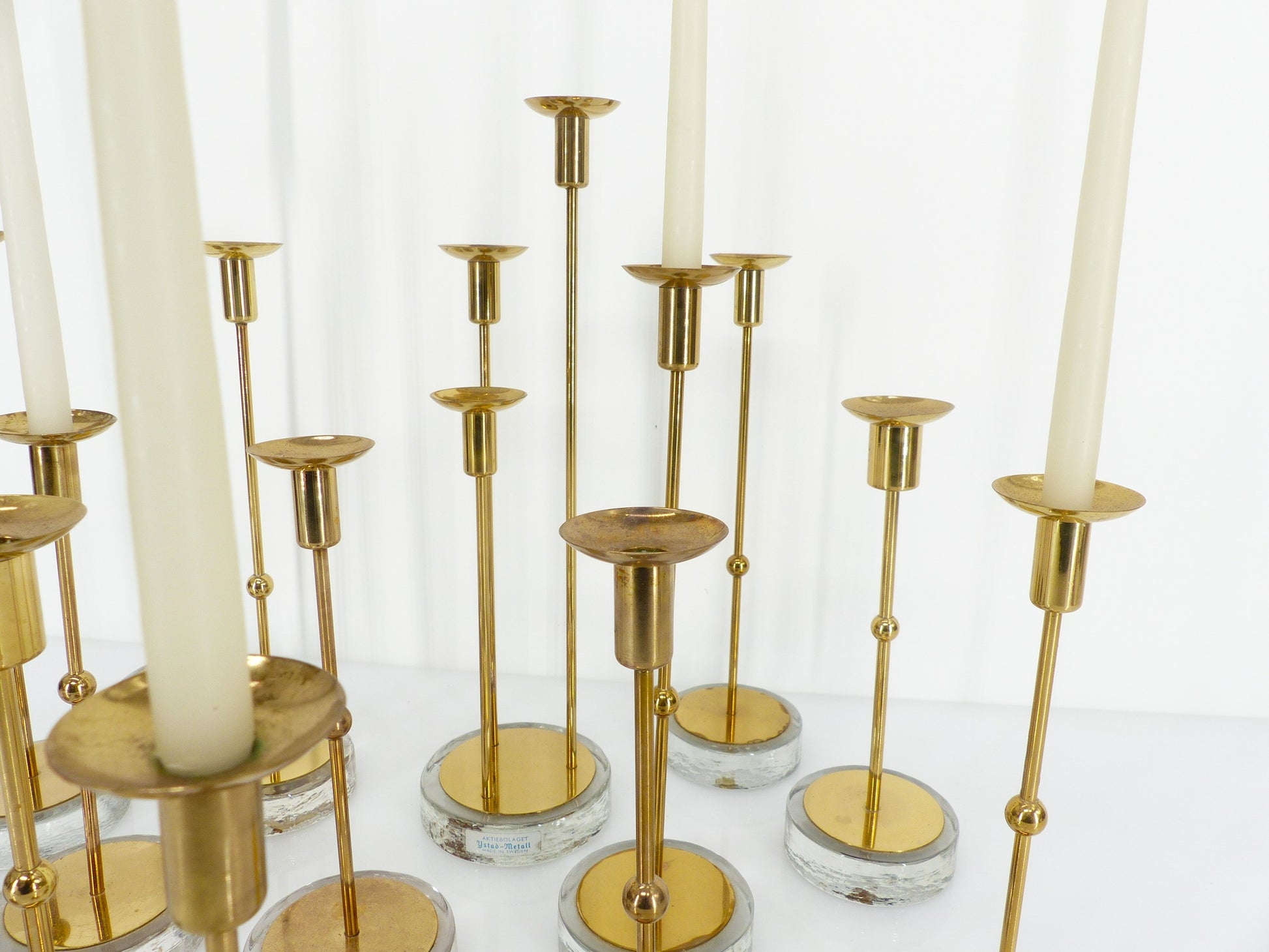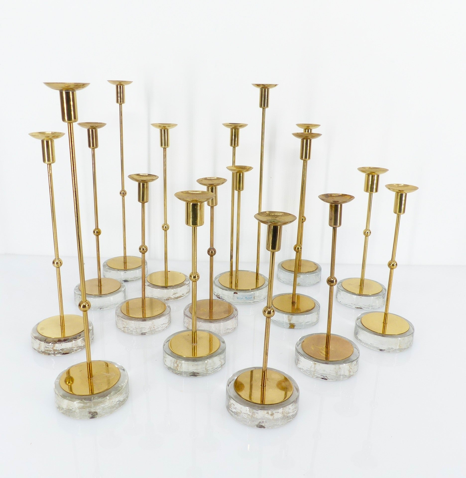 Set de 15 bougeoirs scandinaves en laiton et verre, Gunnar Ander, Ystad Metall, Suède 1960